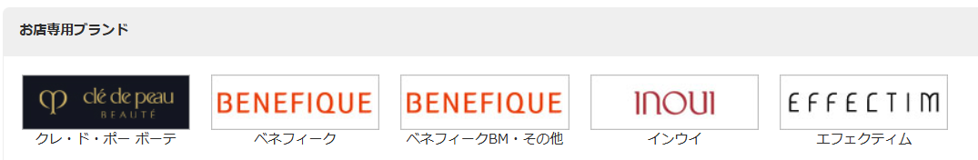 | 主力ブランド | SHISEIDO、クレ・ド・ポーボーテ、NARS、エリクシール、アネッサなど |